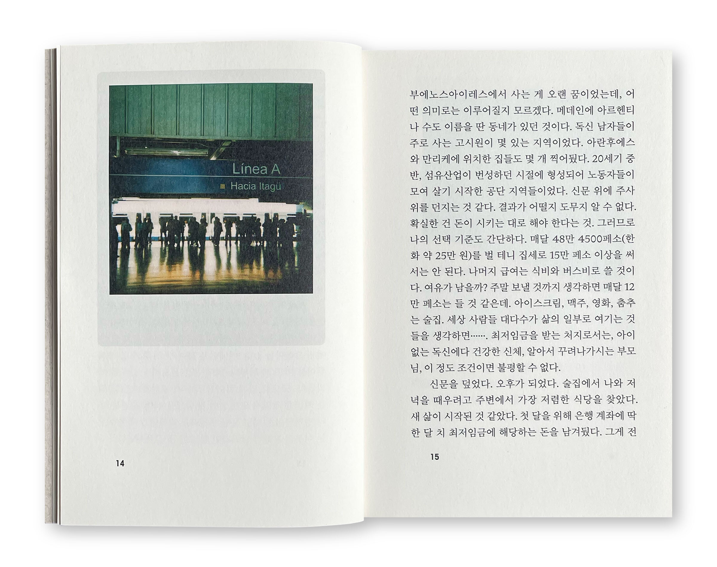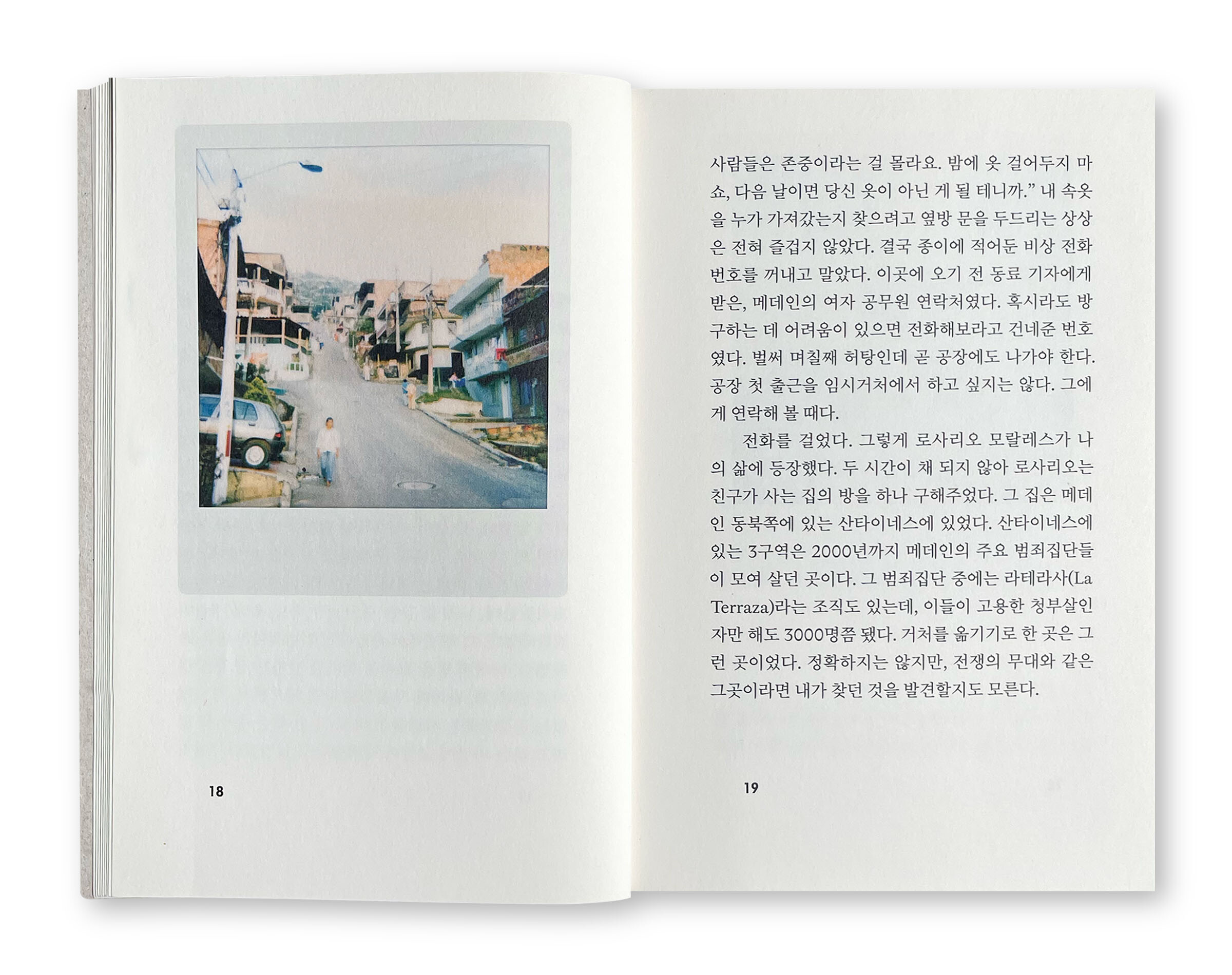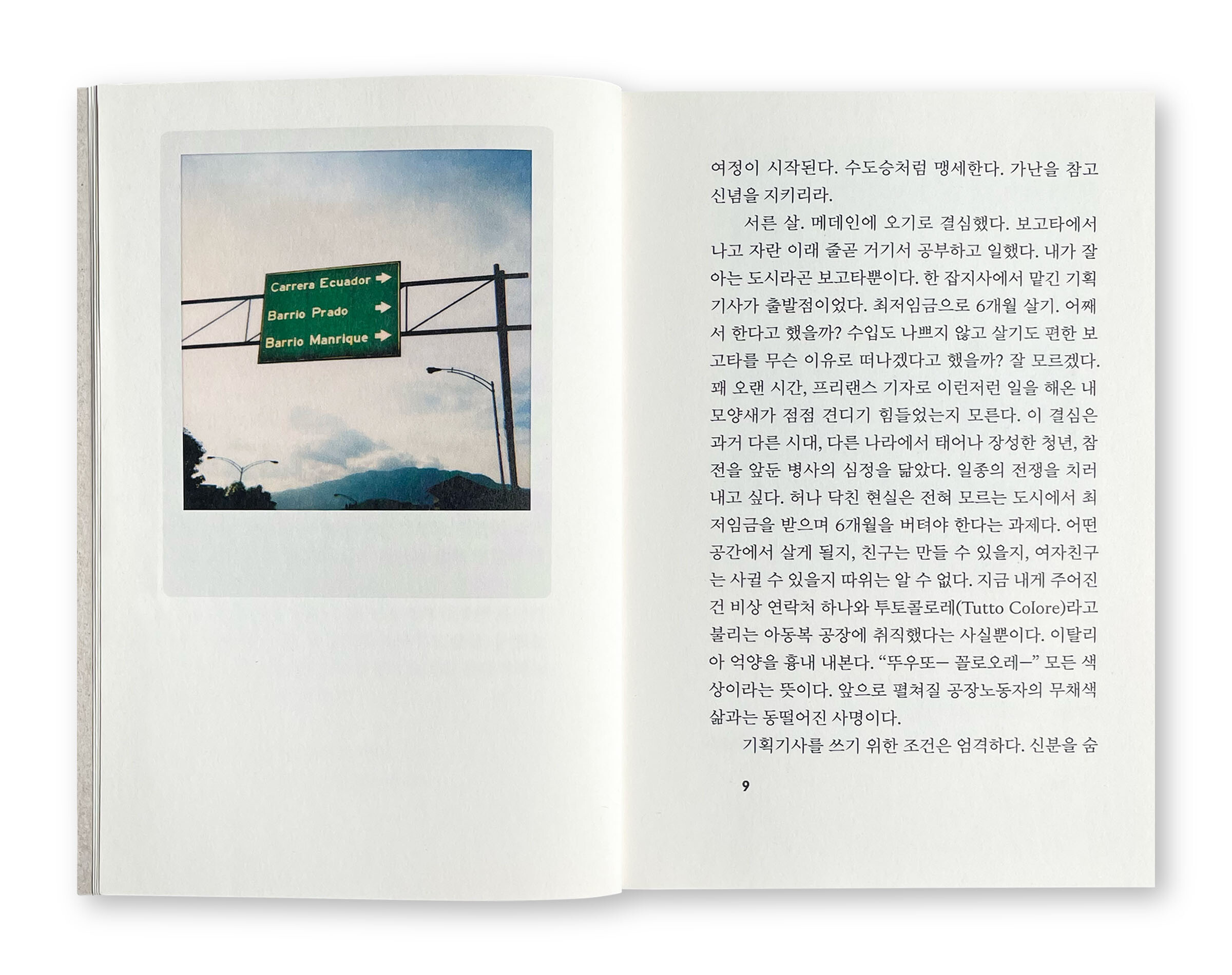 “지금 내게 주어진 건 비상 연락처 하나와 투토콜로레(Tutto Colore)라고 불리는 아동복 공장에 취직했다는 사실뿐이다. 이탈리아 억양을 흉내 내본다. “뚜우또- 꼴로오레-” 모든 색상이라는 뜻이다. 앞으로 펼쳐질 공장노동자의 무채색 삶을 떠올리면 아이러니한 사명이다. 기획기사를 쓰기 위한 조건은 엄격하다. 신분을 숨긴 채 일할 것. 그 누구도 진짜 정체를 알아서는 안 된다. 이 회사에서 받는 급여로만 살 것. 월세, 식비, 교통비까지 모조리 이것으로 해결해야 한다. 원래 가지고 있던 돈과 물품은 전부 보고타에 두고 간다.”