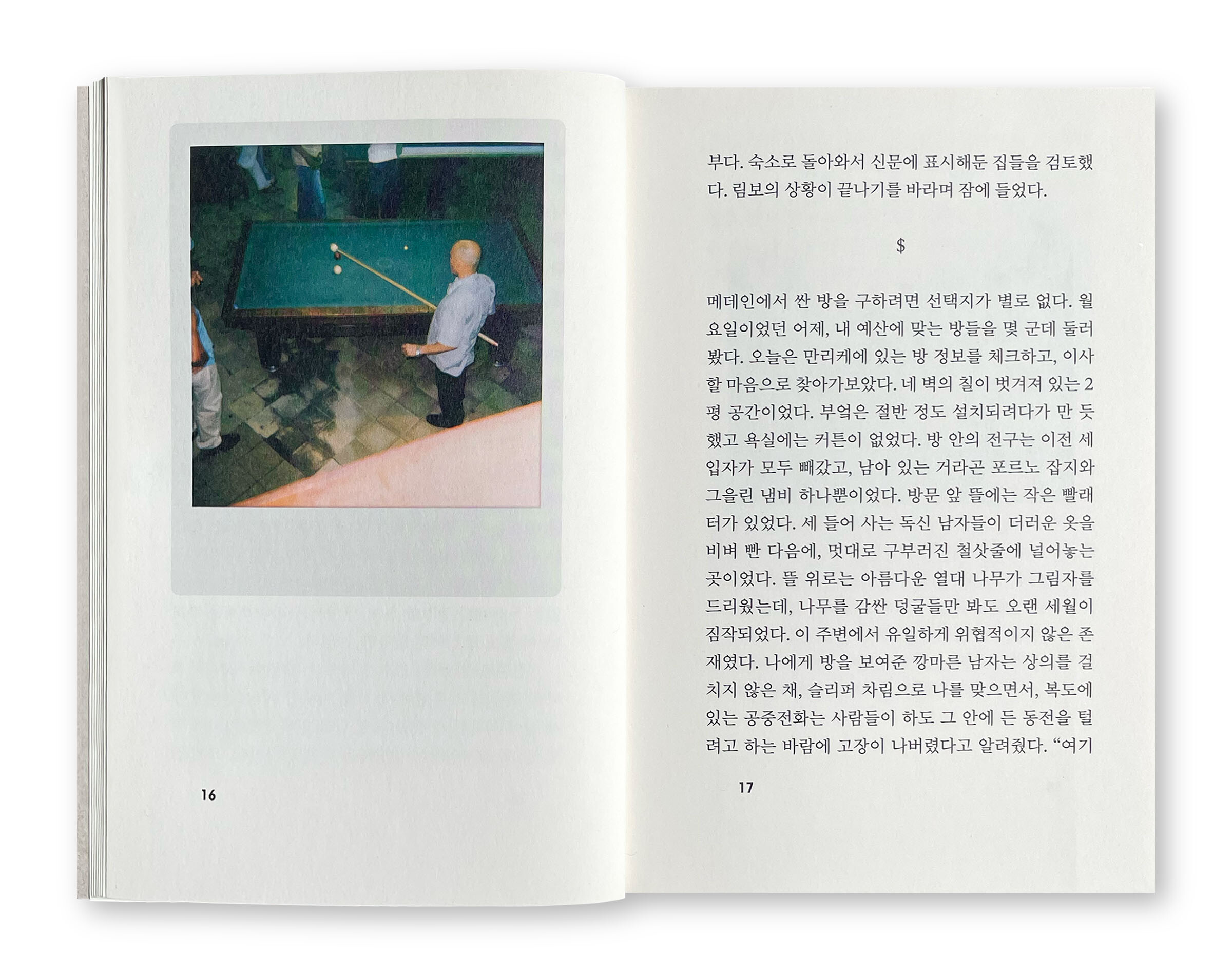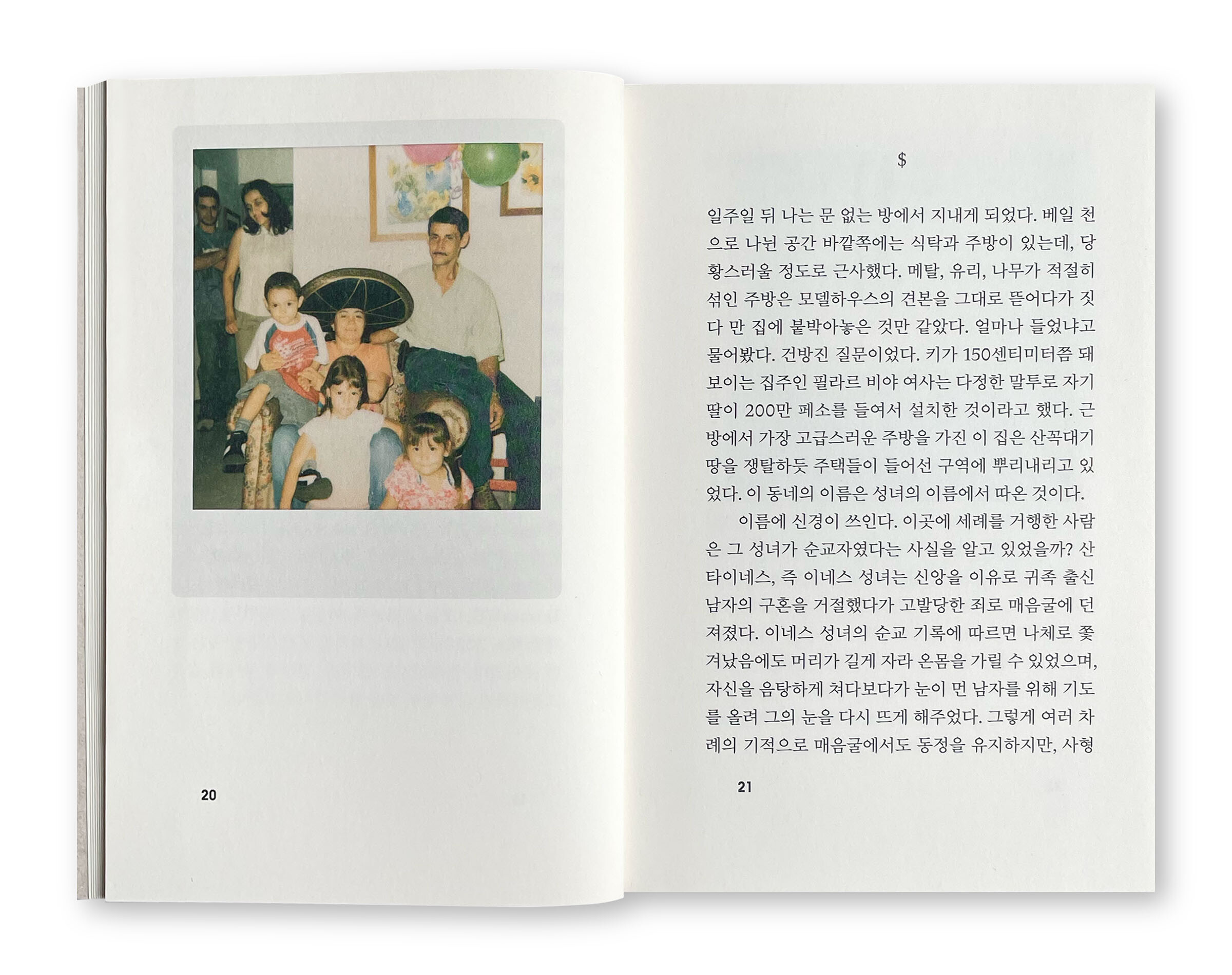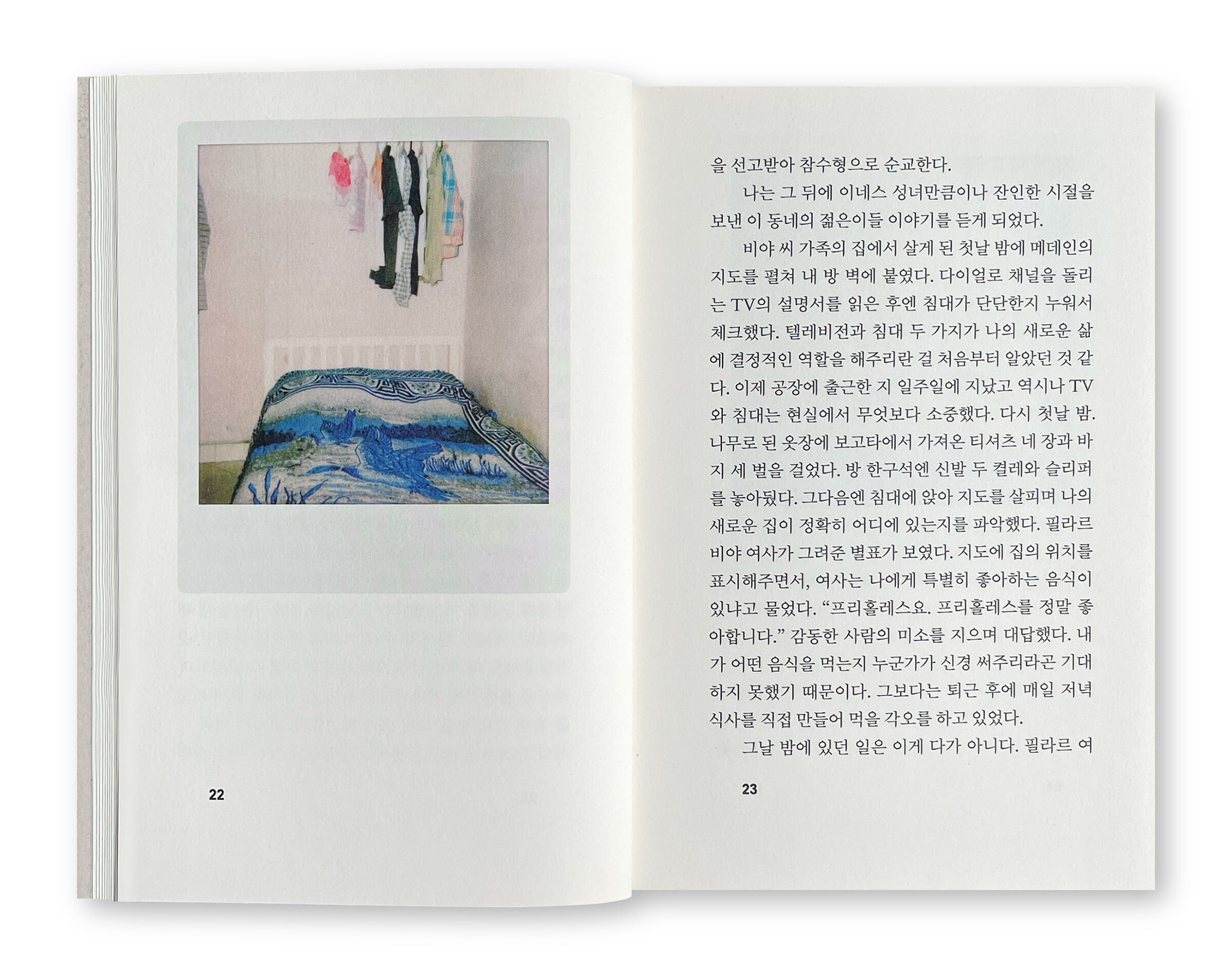 “지금 내게 주어진 건 비상 연락처 하나와 투토콜로레(Tutto Colore)라고 불리는 아동복 공장에 취직했다는 사실뿐이다. 이탈리아 억양을 흉내 내본다. “뚜우또- 꼴로오레-” 모든 색상이라는 뜻이다. 앞으로 펼쳐질 공장노동자의 무채색 삶을 떠올리면 아이러니한 사명이다. 기획기사를 쓰기 위한 조건은 엄격하다. 신분을 숨긴 채 일할 것. 그 누구도 진짜 정체를 알아서는 안 된다. 이 회사에서 받는 급여로만 살 것. 월세, 식비, 교통비까지 모조리 이것으로 해결해야 한다. 원래 가지고 있던 돈과 물품은 전부 보고타에 두고 간다.”