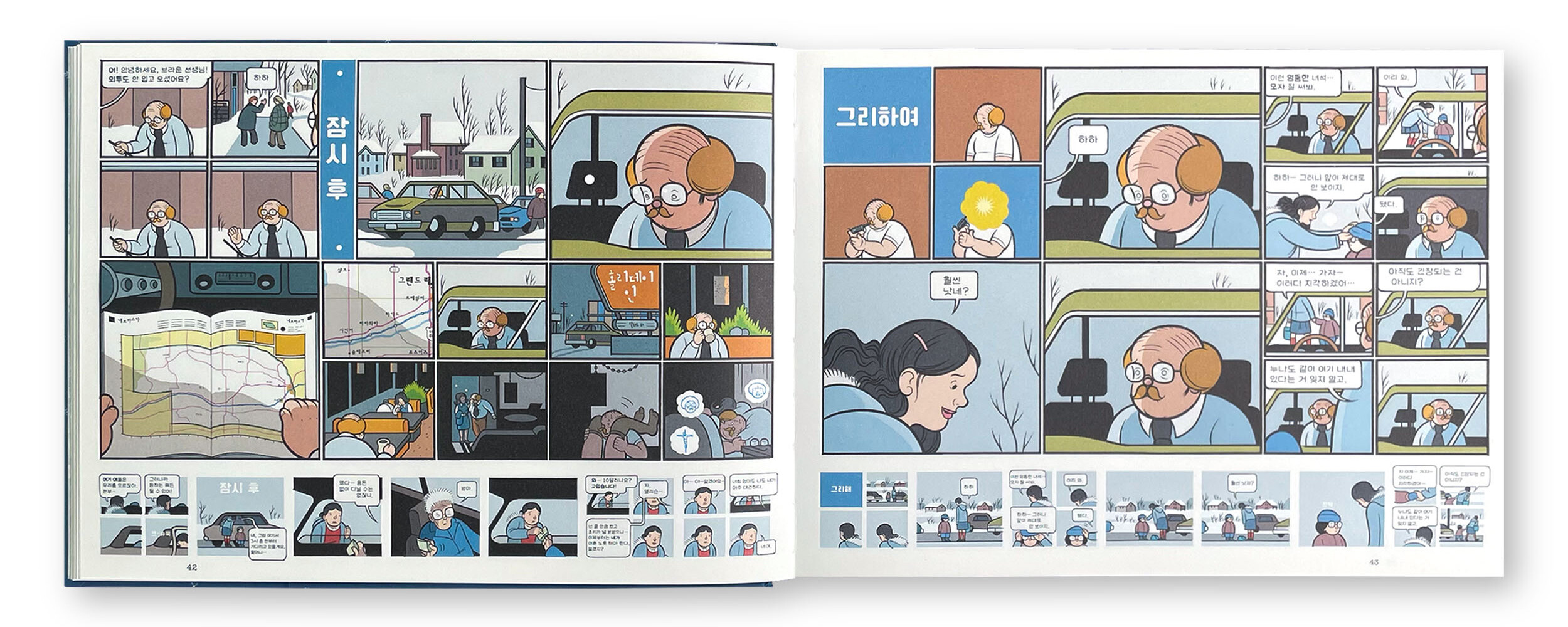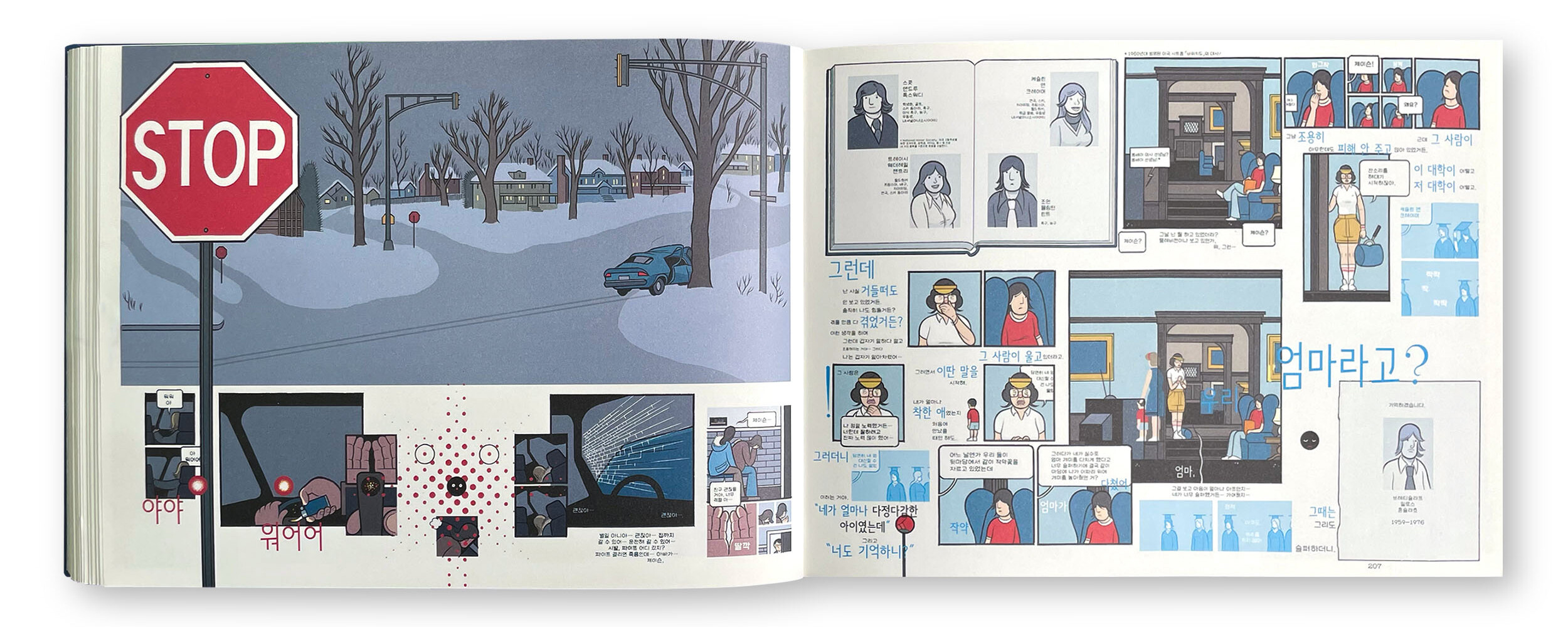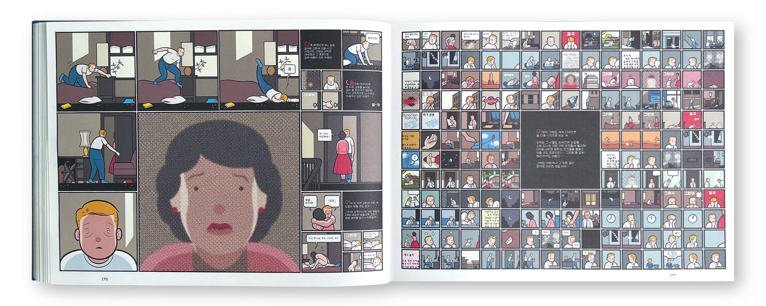 1970년대 미국 중서부 네브래스카의 눈 쌓인 저녁, 이 이야기는 시작됩니다. 하나의 눈 결정은 아름답고 완결적이며 날렵한 테두리를 둘렀지만, 이들이 이루는 눈보라는 비정형의 꼴로 속도를 내며 거기 속한 이들을 휩쓸고 묻습니다. 아주 작은 것부터 아주 큰 것까지, 다양한 크기의 칸을 통해 크리스 웨어는 여기 사는 사람들의 이야기를 한꺼번에 전달합니다. 무력한 인물들이나마, 지나쳐온 고유한 환경과 기억이 있고, 그 기억이 현재를 덮칠 때 이들의 미세하고 날카로운 감각이 되살아납니다. 이 책 속의 세부는 단순히 전체에 봉사하지 않으며, 그 자체로 의미를 발합니다.