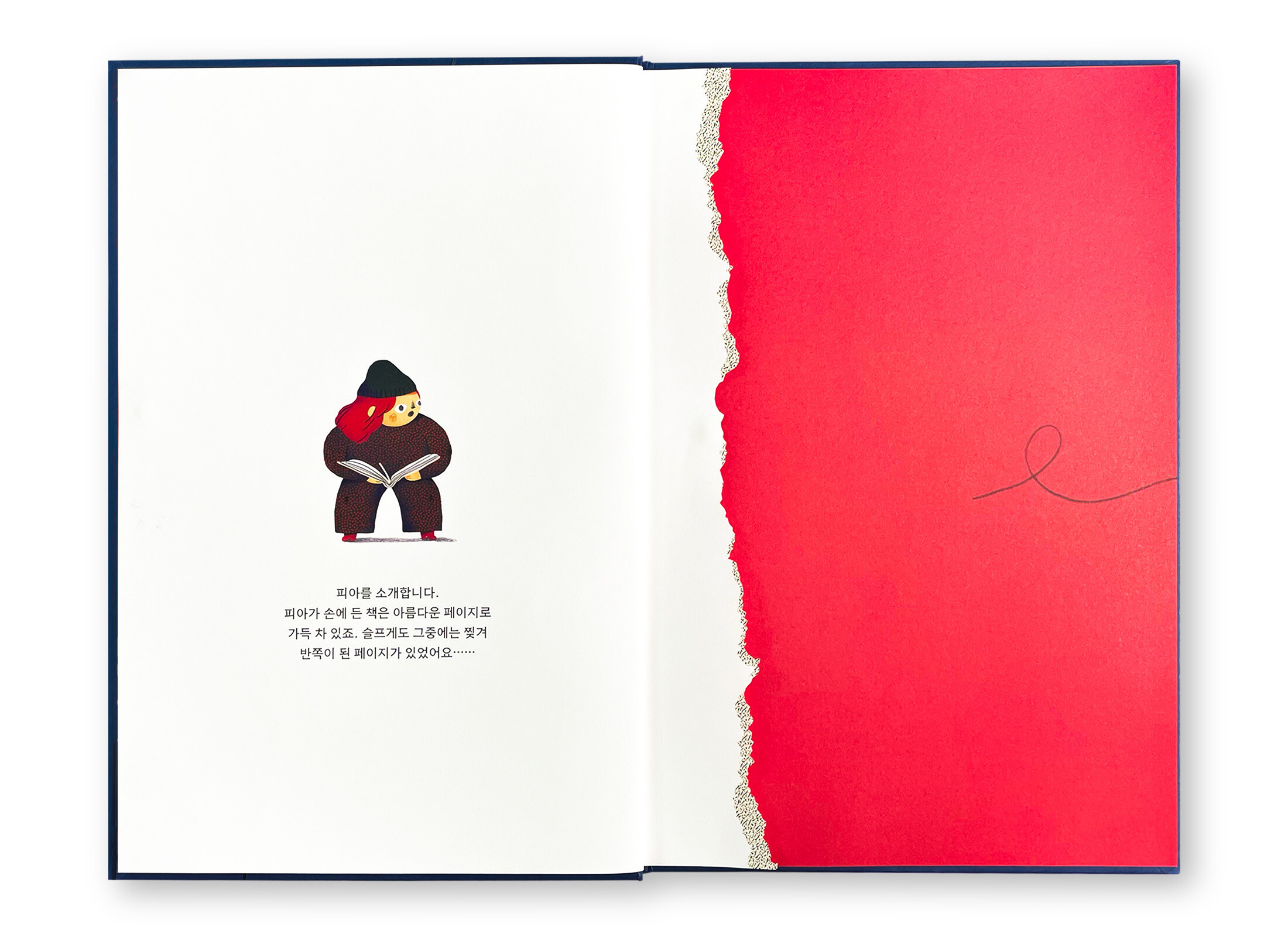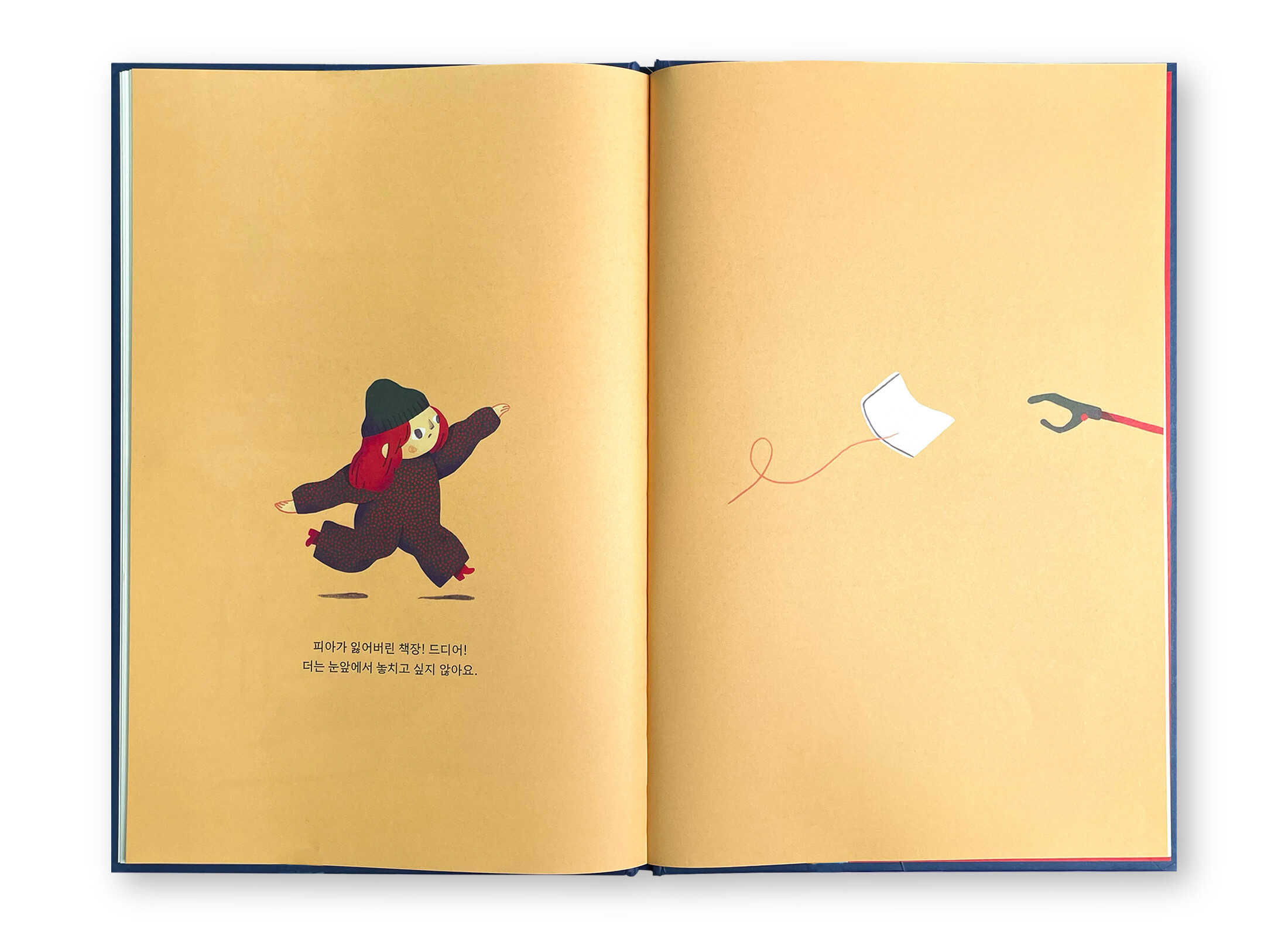 피아는 가장 아끼는 책에서 그것도 가장 아끼는 페이지 하나를 잃는다. 페이지를 되찾고 싶어 떠난 피아의 모험은 당연하게도 여러 장소를, 여러 사람을 거쳐간다. 피아가 도움을 미처 구하기도 전에, 각자의 딱한 사연을 들려주기 시작하는 사람들. 하지만 그 어느 누구도 피아의 관심과 행동을 끌지는 못하는데. 자신에게 중대한 문제에 몰두해 있는 피아. 우리는 어떤 감각을 이용하여 이 친구의 숨은 마음을 읽어낼 수 있을까.