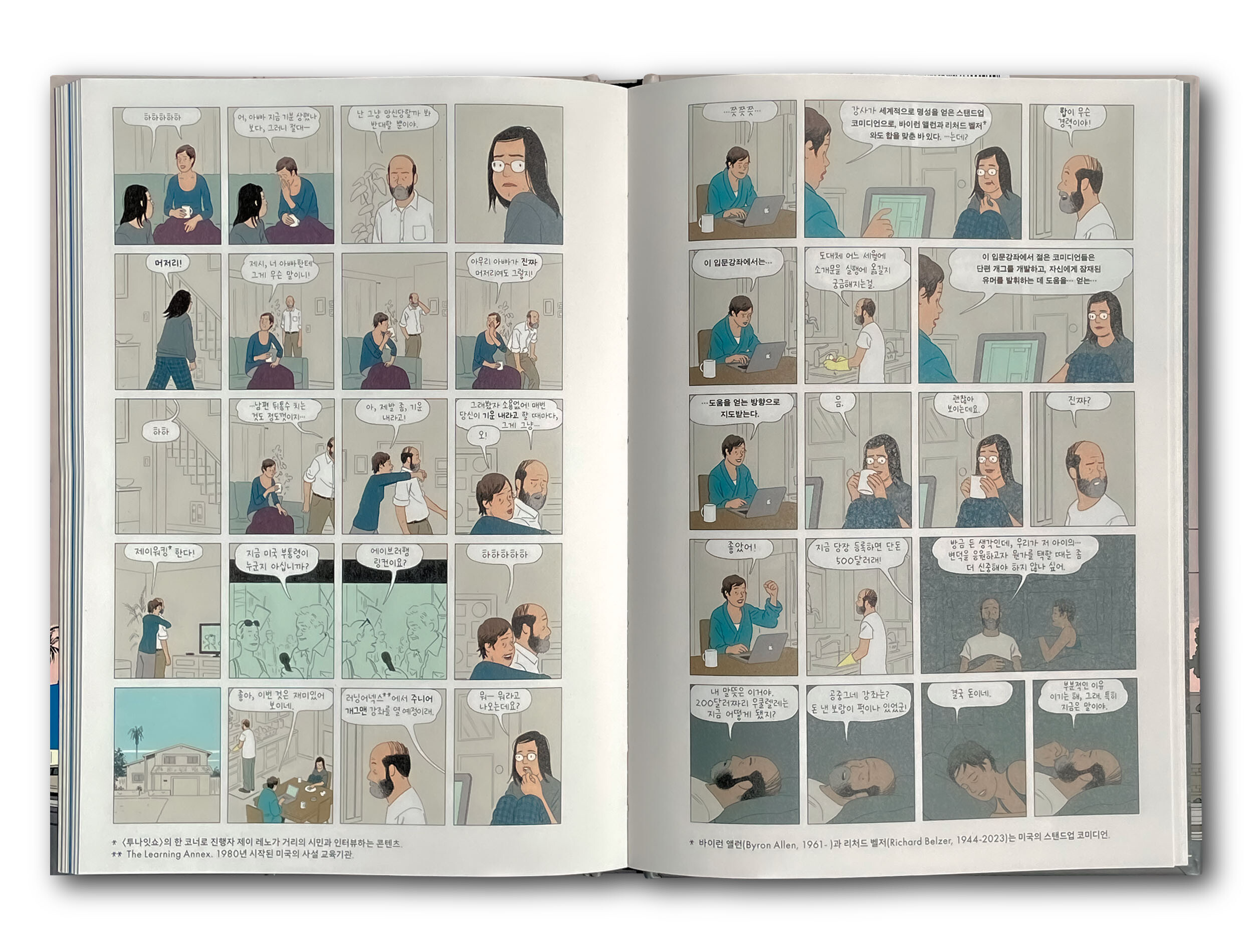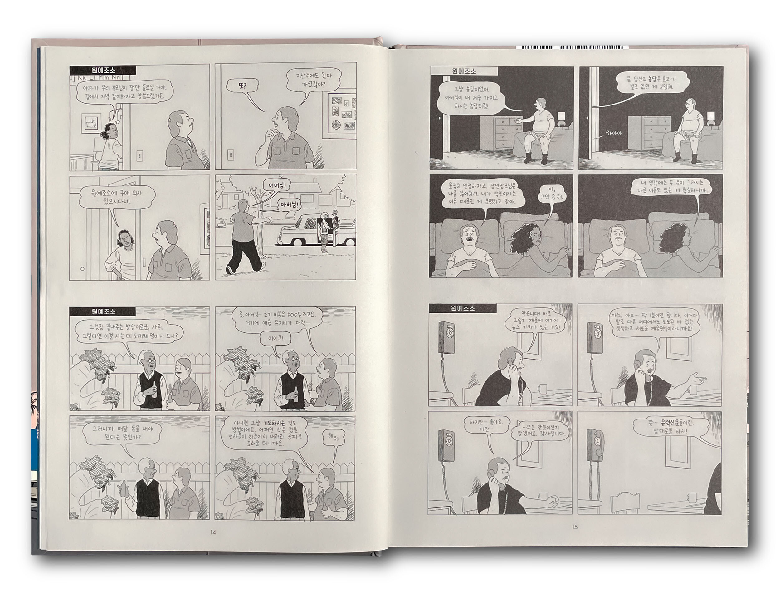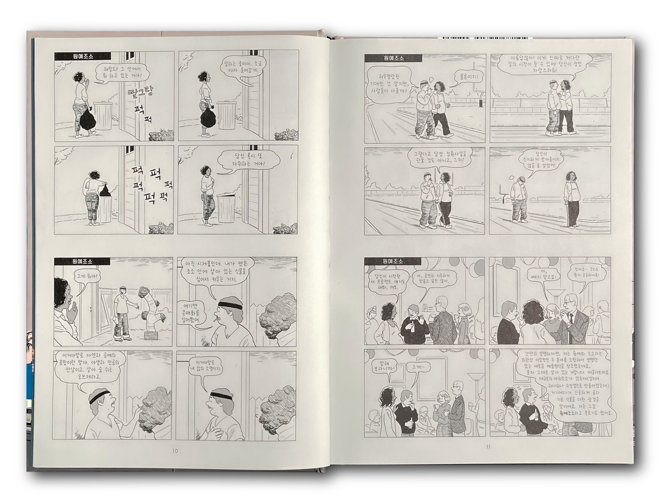일본어에서 옮김 Translated, from the Japanese - 한 어머니가 자녀에게 보내는 편지에서 가족 간의 긴장과 각 구성원의 고립이 드러난다. 인물이 담기지 않은 스틸 이미지만이 줄 수 있는 뉘앙스와 덤덤한 캡션이 인상적인 작품. 킬링 앤 다잉 Killing and Dying - 시한부 어머니를 둔 10대 딸은 스탠드업코미디라는 장래희망을 발표한다. 죽여주는 농담을 개발하기 위해 노력하는 딸과 딸의 재능(과 그 밖의 모든 것)을 배워가려는 아빠의 모습이 눈물과 웃음을 동시에 준다.